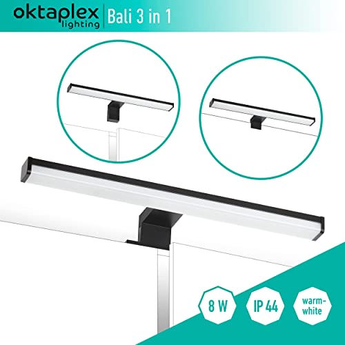 Oktaplex lighting LED Mirror Light Nero 40cm 3 in 1 Montaggio 3000K Bianco caldo 8W 570lm Lampada per specchio da bagno