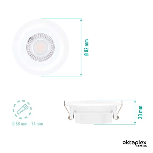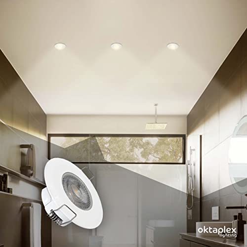 Oktaplex Lighting Paris Bain - Set di 3 faretti da incasso a LED, 5 W, 2700 K, 230 V, 350 lm, IP 44 Ra>97, luce bianca calda, ultra piatti, 30 mm, faretto LED bianco
