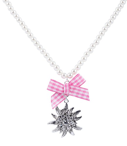 SIX 1 pz di Oktoberfest, collana da donna, collana di perle, stella alpina, fiore, ciondolo fiocco rosa, argento (758-640)
