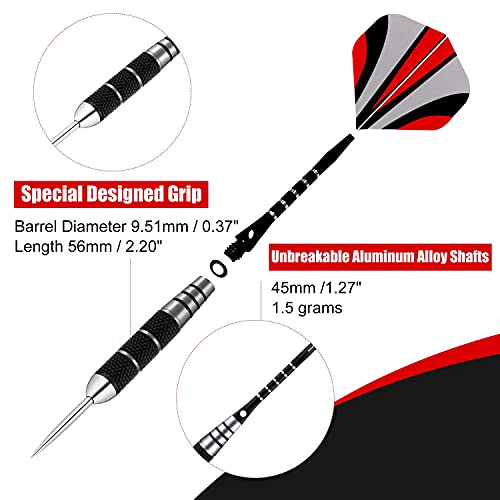 Okuleya Freccette Professionali 22g 6 Freccette con Aste da Intaglio in Alluminio Nero, 12 Pezzi di 4 Alette Stile, Anelli in Gomma, Chiave Inglese, Protezione di Volo da 8 Pezzi E Custodia