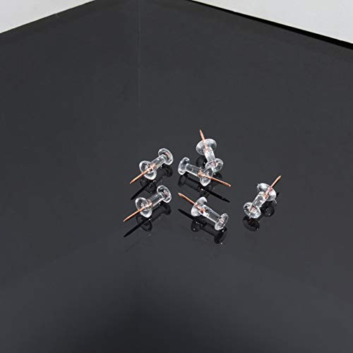 Okvgo Puntine da 150 pezzi con testine in plastica e punte in acciaio per mappe e disegni su bacheche di sughero, multicolori Tappo trasparente con punta in oro rosa.