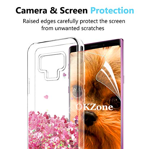 OKZone Cover Galaxy Note 9 [con Pellicola Proteggi Schermo], 3D Glitter Liquido TPU Cover,Brillantini Fluttuante Quicksand Scintillio Bling Protettiva Custodia per Samsung Galaxy Note 9 (Cuore Rosso)