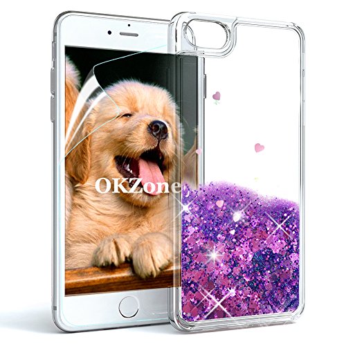 OKZone Cover iPhone 8/iPhone 7 [con Pellicola Proteggi Schermo], 3D Glitter Liquido TPU Cover,Brillantini Quicksand Scintillio Bling Protettiva Custodia per Apple iPhone 8/iPhone 7 (Cuore Viola)