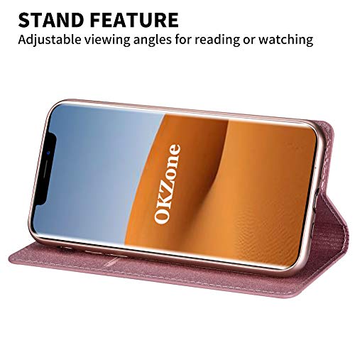 OKZone Cover iPhone 11 Pro Max,Custodia Lucciante con Brillantini Glitters Design Flip Caso in Pelle Portafoglio con Interno TPU Protettiva Cover per Apple iPhone 11 Pro Max (6,5 Pollici) (Oro Rosa)