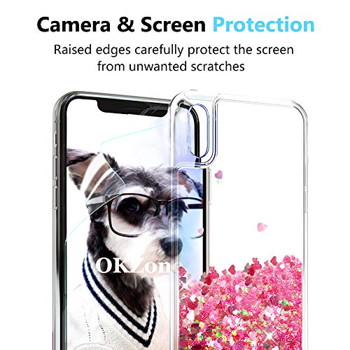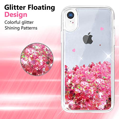 OKZone Cover iPhone XR [con Pellicola Proteggi Schermo], 3D Glitter Liquido TPU Cover,Brillantini Cristallo Fluttuante Quicksand Scintillio Bling Protettiva Custodia per Apple iPhone XR (Cuore Rosso)