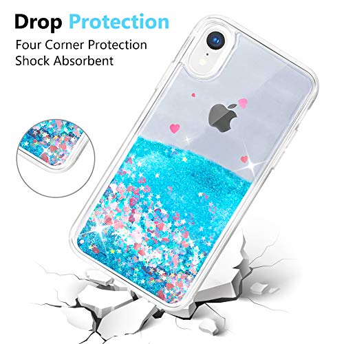 OKZone Cover iPhone XR [con Pellicola Proteggi Schermo], 3D Glitter Liquido TPU Cover,Brillantini Cristallo Fluttuante Quicksand Scintillio Bling Protettiva Custodia per Apple iPhone XR (Cuore Blu)