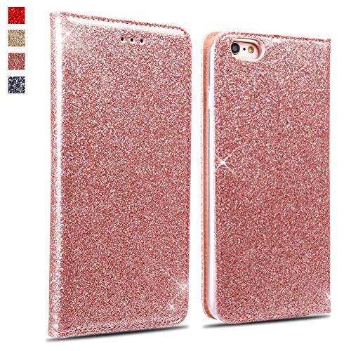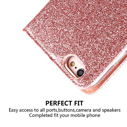 OKZone Cover iPhone 6S Plus/iPhone 6 Plus, Custodia Lucciante con Glitters Design Flip Caso in Pelle PU con Interno TPU Protettiva Cover per Apple iPhone 6S Plus/iPhone 6 Plus (Oro Rosa)
