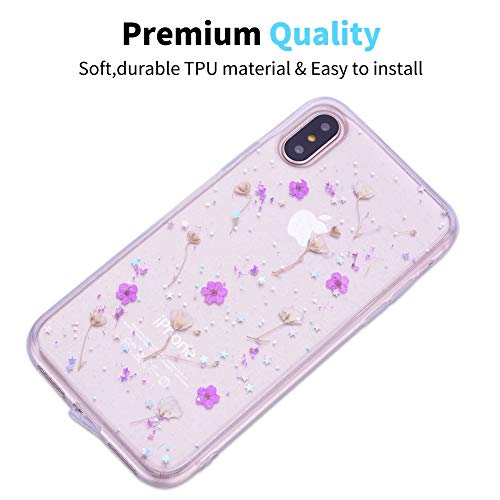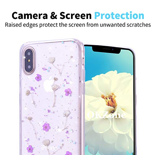 OKZone Cover iPhone XS/iPhone X (5,8 Pollici) [con Pellicola Proteggi Schermo], [Fiori Secchi] Custodia a Fiori Secco Cristallo Gel Custodia Ultra Sottile Cover Morbido Cover Case (Viola)