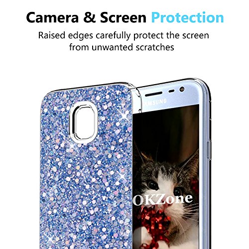OKZone Cover Samsung Galaxy J3 2017, Custodia Lucciante con Brillantini Glitters Ultra Sottile Designer Case Cover per Samsung Galaxy J3 2017 (Blu)
