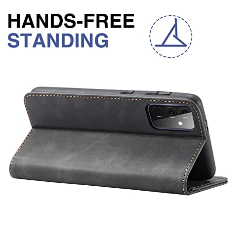 OKZone Cover per Samsung Galaxy A72 5G, Custodia Flip Pelle Portafoglio Magnetica Libro [Slot Schede], Silicone TPU Bumper Wallet Supporto Cover, Antiurto [Kickstand] (Nero)