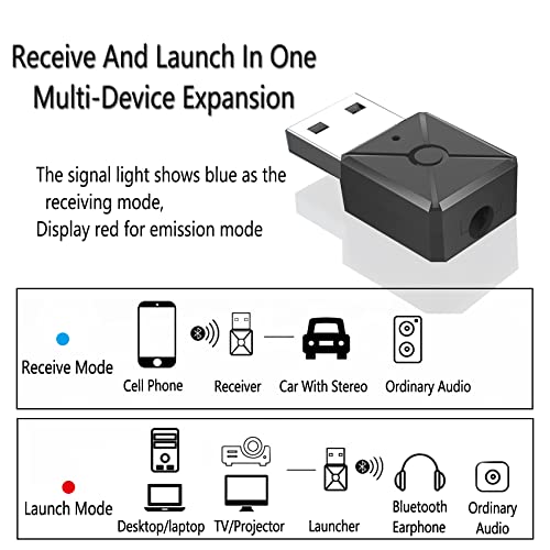 Olakin Adattatore Bluetooth USB 2 in 1, USB Adattatore Bluetooth 5.0 Trasmettitore Ricevitore con 3.5mm AUX Adattatore, per TV, Altoparlanti, Cuffie, PC Bassa Latenza