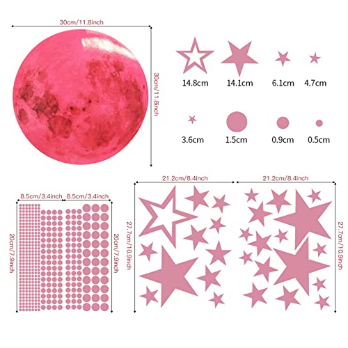 Olakin Adesivi da Parete Fluorescenti, 435 PCS Stelle Luna Dots Adesivi Fluorescenti, PVC Autoadesiv Fluorescenti Decorazione per Camera da Letto Cameretta Finestra Soggiorno(Rosato)