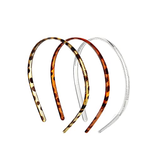 Olakin Cerchietti in Plastica(3 Pezzi), 8mm Denti Fasce per Capelli Sottili Cerchietti Fai da Te, Uomini e Ragazze(Trasparente)