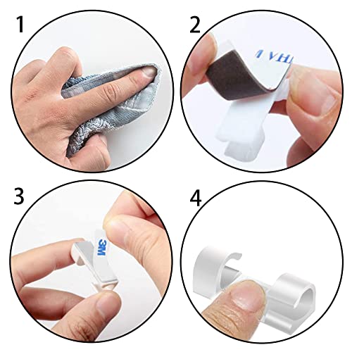 Olakin Clip per Cavi [20 Pezzi], Clip Fermacavi da Parete con Nastri Adesivi, Ganci di Fermacavi Autoadesivi Cavo per Mouse, Pc, Ufficio e Casa(Bianco)