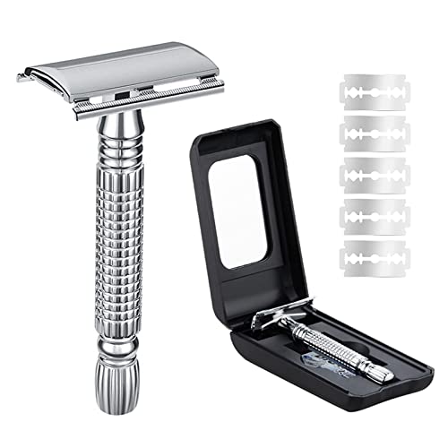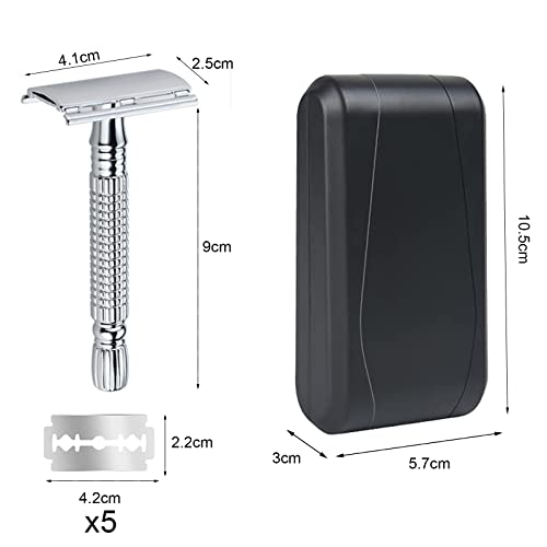 Olakin Rasoio Classic Uomo, Rasoio Sicurezza[5 Pcs Lame], Lama a Doppio Taglio, Rasoio Metallo per Barba Rasoio Manuale Classico Manico Cromato Safety Razor