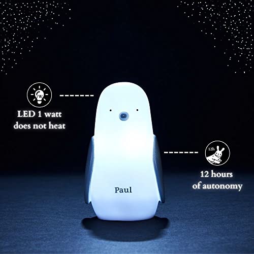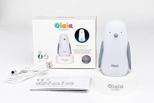 Olala - Luce notturna portatile a forma di pinguino a LED, per neonati e bambini, ricarica a induzione, autonomia 12 ore, senza batteria né fili, dalla nascita