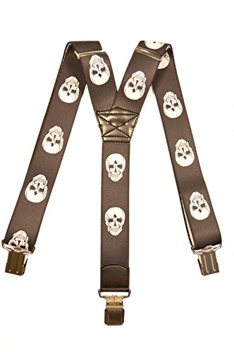 Olata Bretelle regolabili, Extra Forte 4 Clip X-Forma, 4cm larghezza, Modelli Stampati - Teschi
