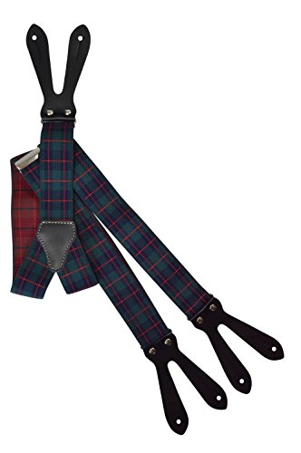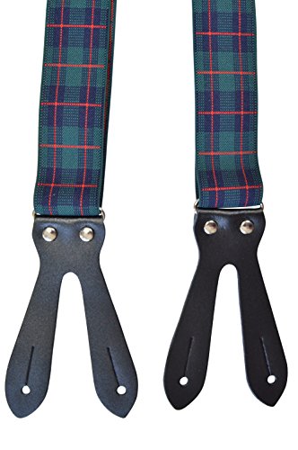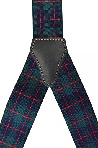 Olata Formal Unisex Bretelle regolabili con Vera Pelle Asole, 3.5cm larghezza - Verde, Blu e Rosso Tartan