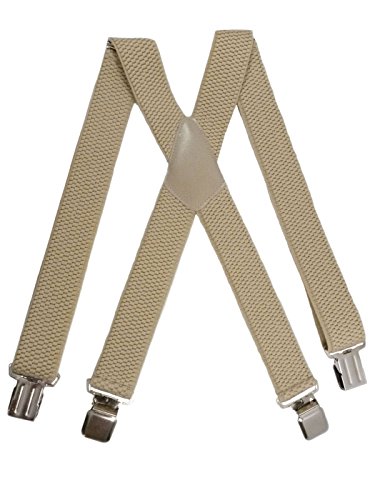 Olata Unisex Bretelle regolabili, Extra Forte 4 Clip X-Forma, 4cm larghezza. Crema Chiaro