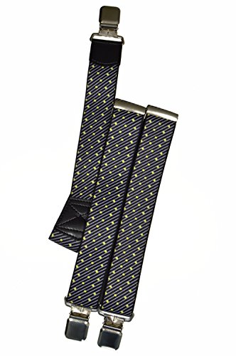 Olata Unisex Bretelle regolabili, Extra Forte Y-Forma con Stampato Modelli, 4cm larghezza - Nero con Strisce Bianche & Verde Lime Puntini