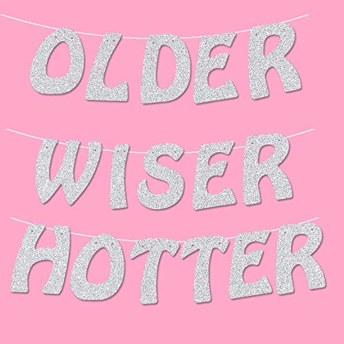 Older Wiser Hotter Banner Gold Glitter Divertente Festa di Compleanno Decorazioni Buon Compleanno Festa Forniture per il 30° 40° 50° 60° 70° 80° compleanno decorazioni per feste ... (Sliver)