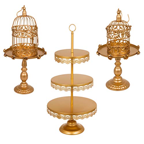 OldFe Set di 12 Alzata per Torta Oro Alzata per Torta Nuziale a 3 Piani Piatto di Torta Torta Cup Pan Cesto Dessert Supporto Pasticceria per La festa di Compleanno e di Matrimonio(12 pezzi, oro)