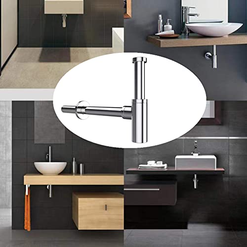OLEAH Sifone per lavabo/sifone universale, design in ottone, 1 1/4" x 32 mm, chiusura antiodore, manicotto in gomma, sifone tubolare, cromato