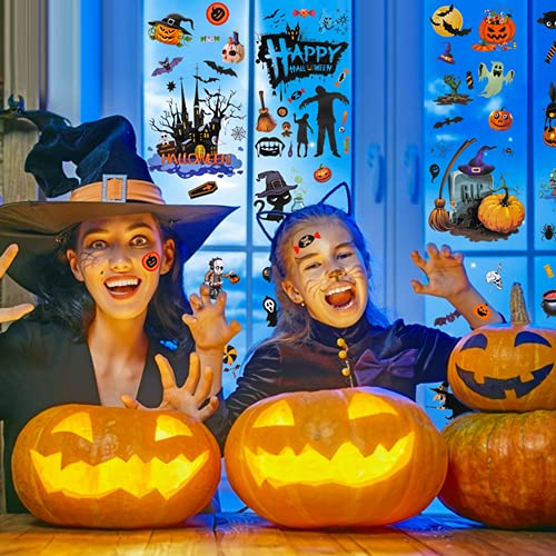 Oledank 9 Fogli Adesivi Decorazione di Halloween, 120 PZ Zucca di Halloween Teschio Fantasma Decorazione della Stanza Aderisce alla Finestra