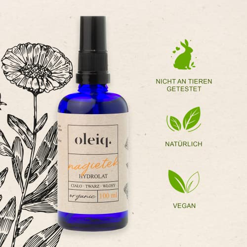 OLEIQ Calendula idrolato tonico viso per la cura del giorno e la cura notturna, secca, irritata, mista, grassa e acne. Cosmetici naturali vegani per donne e uomini taglia 100 ml.