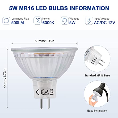 【Risparmio energetico e lunga durata】: Lampadine LED MR16 GU5.3 da 5W ha una potenza equivalente a quella di una lampada alogena da 50W e consente di risparmiare fino al 90% dell'elettricità in casa. Con una durata di illuminazione di oltre 30.000 ore, è adatta a luoghi in cui è scomodo cambiare frequentemente le lampadine, dando vita alla semplicità.
