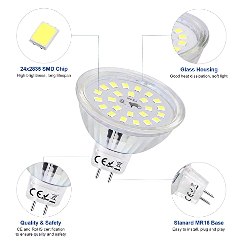 OLEVOLT LED Lampadine MR16 GU5.3 Luce Freddo 6000K 550LM 5W Equivalenti a 50W Lampadina Alogene, Faretti LED 12V Lampadina LED GU5.3 Angolo del Fascio 120° Non Dimmerabile Set di 4