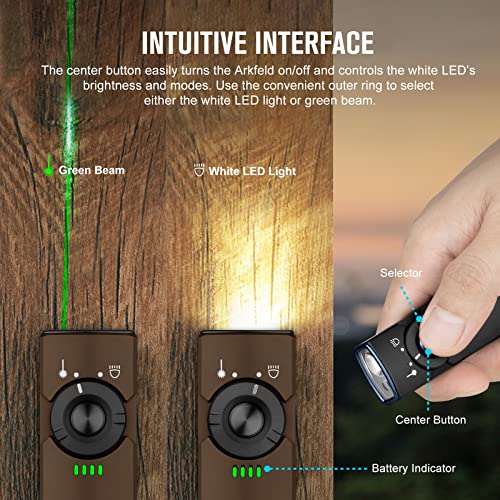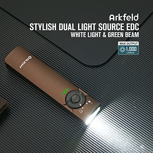 Olight Arkfeld torcia elettrica ricaricabile EDC combinazione di fascio verde e LED bianco IPX7 e test di caduta da 1 m adatta per attività all'aperto lavoro e emergenza (Deserto bianco freddo)