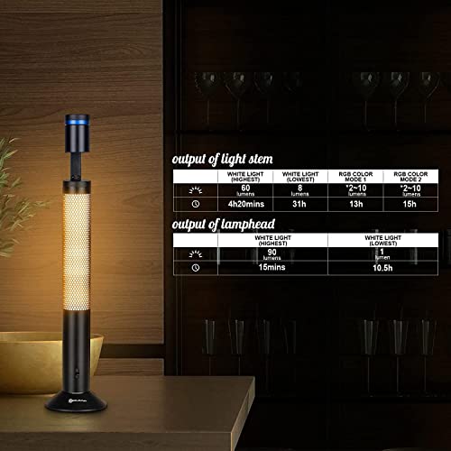 【Ricarica Conveniente】 La lampada da terra ha una batteria integrata di grande capacità, che può essere utilizzata per 31 ore dopo essere stata completamente caricata tramite la porta USB-C inferiore;