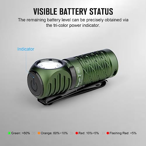 OLIGHT Perun 2 mini Lampada Frontale LED 1100 Lumen Torcia Elettrica Ricaricabile 5 Livelli di luminosità, Regolabile a 180° per Corsa, Jogging, Campeggio, le segnalazioni di emergenza(Verde Oliva NW)