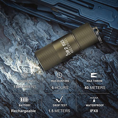 OLIGHT I1R II Mini Torcia LED da 150 Lumen, per Portachiavi, Ricaricabile, EOS Piccola Torcia Tascabile Impermeabile IPX8, per Campeggio, Escursionismo, con Cavo USB(Deserto)