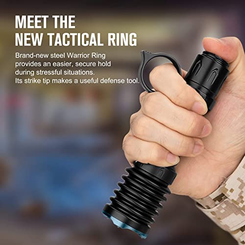【Più Facile da Utilizzare】L'anello della Warrior cui è dotata e quello della impugnatura tattica in silicone forniscono un migliore controllo della torcia durante le situazioni di stress. Il Warrior Ring ha anche una punta d'attacco.