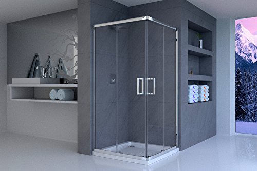 Olimpo Docce EUC-80X150 Doccia di Lusso Scorrevole con Lato Fisso Reversibile Anticalcare, Trasparente, Set di 2 Pezzi