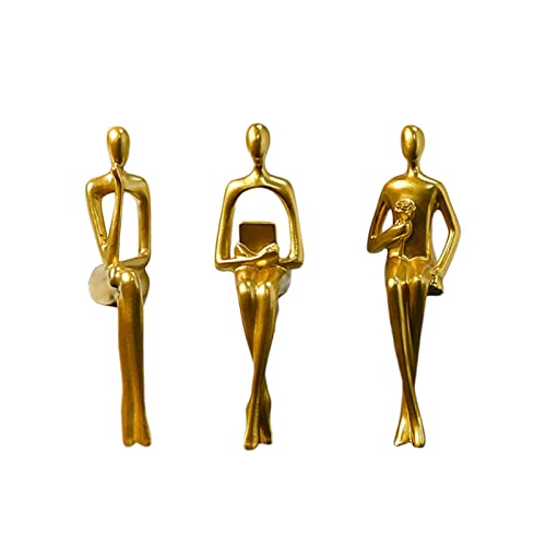 OLIMY 3Pcs Sitting Thinker Statue Abstract Art Ornaments Sculpture Sitting Posture Abstract Figure for Bookshelf Desk Study Decor Collection