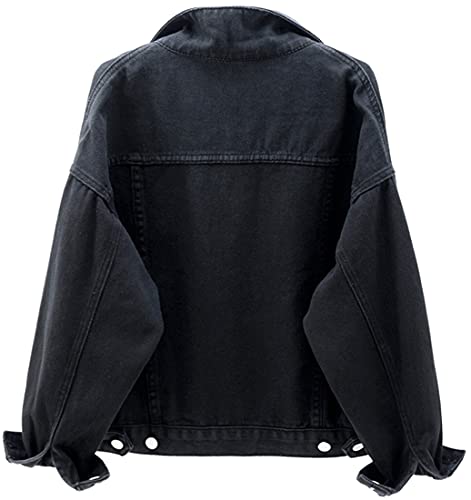 OLIPHEE Giacche da Abito Denim A Tinta Unita Stile Classico Cardigan Casuale per Quotidiano per Ragazze e Donna M Anero