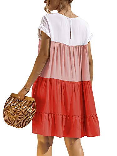 Olisenci Abito estivo da donna, con scollo rotondo, maniche a balza, da spiaggia, Swing Flowy Colore: arancione. S