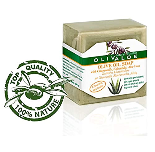 OLIVALOE 00198 - Sapone di olio d'oliva tradizionale fatto a mano, con camomile, calendula, aloe vera, 200 g