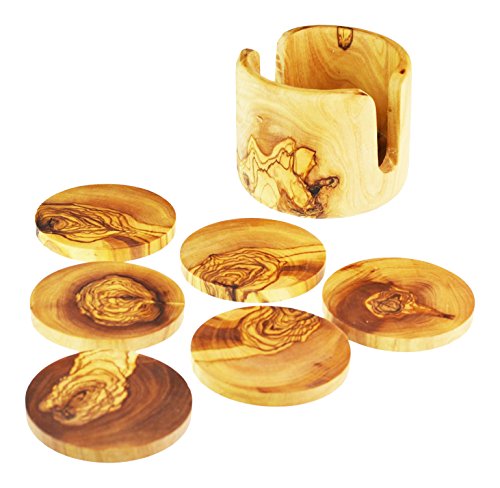Olive Wood in Legno di ulivo Non-Rustic sottobicchieri, 6 Pezzi, Grana Naturale
