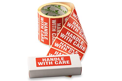 500 etichette per 1 rotolo "Handle With Care" etichette dimensione 9 x 3, 5cm / 90x35mm