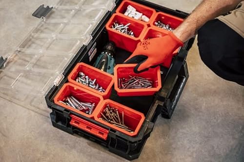 Pratico organizer - Valigetta pratica e versatile con 6 contenitori piccoli e 3 grandi per accessori e materiali di consumo. Pala in policarbonato: estremamente resistente, trasparente e abbastanza flessibile per mantenere i contenitori al loro posto.