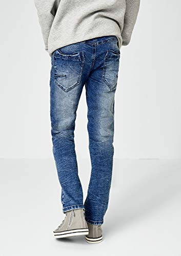 Effetto pieghe, lavaggio autentico, design a 5 tasche con bottone e chiusura lampo