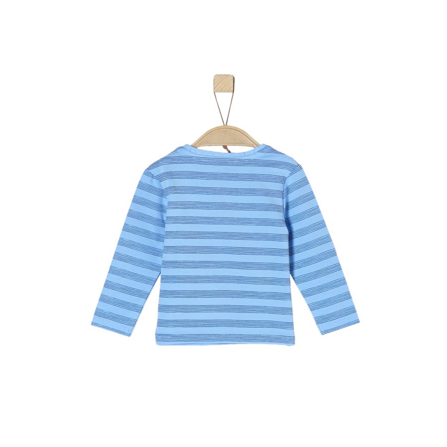 Per tutti i genitori che già nelle prime settimane di vita sono alla ricerca di un comfort morbido e coccolone in un design a misura di bambino per il loro bambino, offriamo un'ampia scelta con la moda per bambini di s. Oliver. s.Oliver La moda bambino ispira con un comfort di coccole meravigliosamente morbido, fatto di puro cotone naturale e ha tutto ciò di cui i piccoli esploratori del mondo hanno bisogno per le loro avventure quotidiane. Elegante camicia a manica lunga marittima con motivo a righe. Sul davanti è presente una scritta gommata in colori neon e un disegno a stampa. I pulsanti laterali sulla scollatura rotonda facilitano la vestizione e lo svestizione. Dettagli del prodotto: Materiale: 95% cotone, 5% spandex Lavabile fino a 40 °C