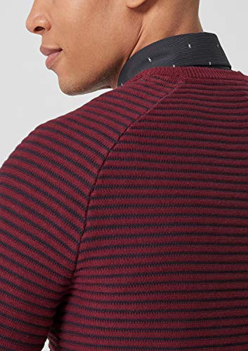 In maglia strutturata con motivo a righe, girocollo con pannello a costine.