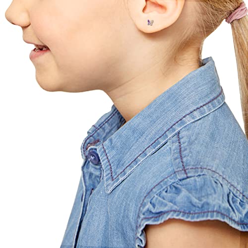 S.Oliver Ear studs Orecchini per bambini in argento sterling 925 ragazze, con zirconia synth, 0,5 cm, multicolore, farfalla, fornito confezione regalo gioielli, 2031532