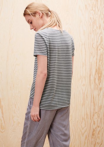 Maglietta a righe con maniche a 1/2 leggermente sovrapposte e ampia scollatura con struttura in lino