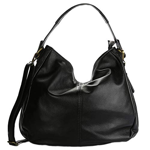 Olivia - Borsa in pelle morbida da donna - Porta mano e spalla - Rif: Sydney 36x32 CM - Nero, Pelle, Noir-f